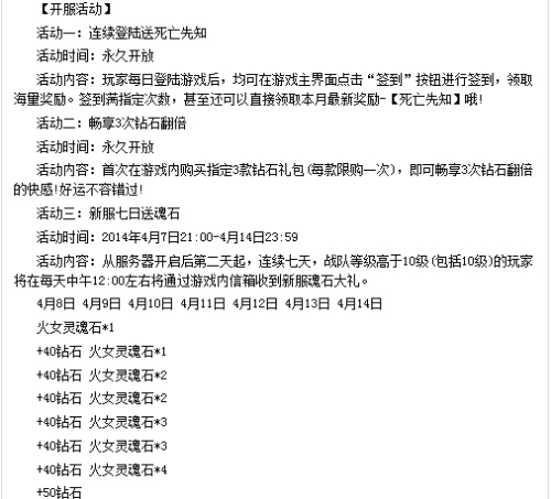 只要登录签到就送死亡先知了,在也不用为了收集灵魂石四处奔波了,只要开服后第二天起战队等级高于10级,钻石火女灵魂石随便送了,还在等什么赶紧加入游戏吧