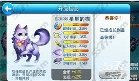 新坐骑终于和大家见面了,并且还有一个好听的名字星星的猫,弹它的外观并不是像喵星人那样,星星的猫紫色的毛,系着一个铃铛,满级属性为100级。属性方面感觉比较的不错,和闪电骑士比起来差不多。特效技能那就不一样了。来自星星的你在游戏中是一袭星星猫,外观应该蛮受大家喜欢的,特效技能是吃任意的炸鸡和啤酒,开局可以冲刺700米,并有终极冲刺技能,这只来自星星的猫是在是无人可挡了。
