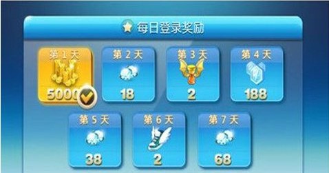 只有每周第一天送的是5000金币,其他日子全是好东西,18+38+68=124钻石 188精灵石 4个钻石道具,是不是已经不淡定了?