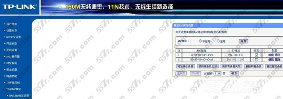 1C-6F-65-CE-1A-FD 就是我电脑的MAC地址 相当于人的身份证,知道自己叫什么了,就把他绑定,除了这台计算机 其他设备都不允许上网,这就是利用路由器里面的防火墙来拦截数据,否则你点不了那么多次,下面 2张图是 绑定MAC地址的图不用我多说了吧。