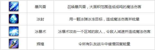 从这三个属性中我们不难看出冰女属于传统法系英雄:血量中等,物理护甲不高,魔法抗性较高。