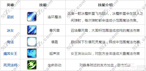 对于普通玩家来说,巫妖是远征中获得灵魂石,相信会是较快进阶4星的英雄之一。冰女刷一刷就有了,推测很多玩家对这位卖萌暴力的英雄都情有独钟。骨法和女王是目前公认的暴力法师,但是可遇不可求,因此要看脸,没有的话就用初期的宙斯和火女代替。宙斯在进阶紫色后的技能伤害也是非常恐怖,尤其是有了刷新之后。我机网小编觉得肉盾推荐死灵,能奶能盾,不过这个也要看脸。