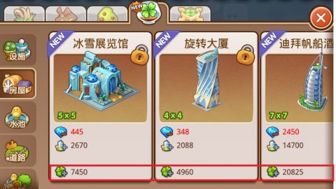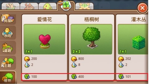 接下来就放两张分别为金币和钻石提高绿化度最高的物品。