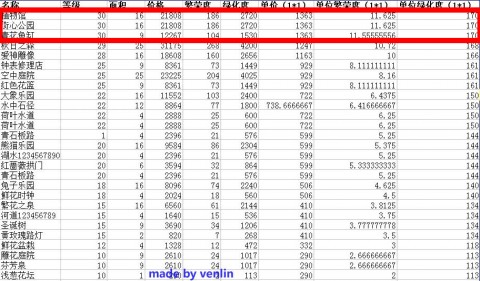 从图上可以看出,足金地砖和央视大厦是单位绿化度最多的物品,但是从面积来看,足金地砖可以完爆央视大厦。所以,足金地砖对于增加绿化度简直就是神器!