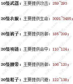 上面,主要是武器,衣服,还有裤子,项链,腰带,鞋子等等的攻击属性,生命加成,防御属性,命中,还有闪避等等内容,数据还是蛮详细的,大家可不要错过啦!