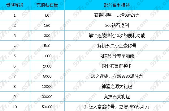 贵族特权,是大家通过购买钻石获得的,每个等级都有相关的钻石数量,比如上图,有60个钻石,玩家就是等级为1的贵族,而他们能够获得时装,而且增加战力!