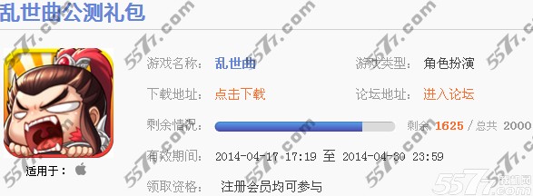 乱世曲游戏上架,游戏为了吸引更多的玩家加入游戏,整理了不少游戏礼包,很多玩家不知道在哪里领取,那么本站整理游戏中各种礼包的详细领取地址和礼包内容!