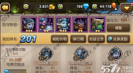 我这里就给大家讲一个锁定的概念:在你打到某个排位的时候,你刷新到了前面的最高位,不退出竞技场界面,就算你被打出10000名开外,你还是可以直接打这个前面的人的,只要你打下了,那么你就可以回去。