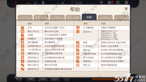 幻影骑士团里有约数百张角色卡片,部分卡片对应着相应的技能,游戏中可以点击界面右上角的问号——“帮助”按钮,然后选择技能一栏就可以看到详细的技能介绍了。