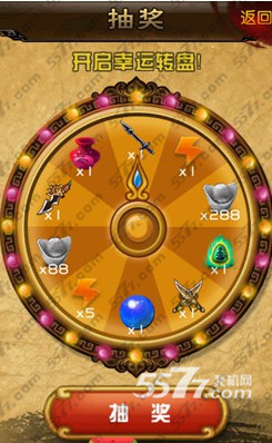 在游戏关卡模式中,使用游戏左下角的"抽奖"可以进入到幸运转盘抽奖界面,每次消耗188银两,奖励中有88银两和288银两,其它的则是游戏道具。