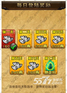 每日登录游戏签到可以获得银两或是钻石。