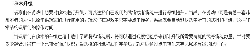 以上这些就是小编对乱世曲秘术升级做一个一些攻略,希望能帮助到哪些刚进游戏没有多久的玩家更加了解这款游戏,这款游戏的可玩性还是比较高的,没有好游戏玩的玩家可以试一试。