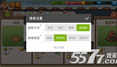 3.然后我们在返回到商城界面,选择小麦种子搜2,选择番茄种子搜3一直循环,直到搜到100数值以下查看(有时候数值太小就查不到了,不知道为啥),玩家不要觉得这样比较麻烦,毕竟破解游戏的确是一件比较头疼的事情。