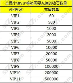 全民小镇vip1,只需要60钻石,vip2,就要玩家500钻石,接着vip3是1000钻石,vip4为2000钻石,vip5需要5000钻石,vip6需要的是1W钻石,晕倒,这真实翻倍增长有木有?