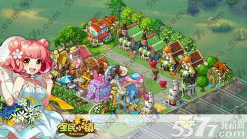 全民小镇登陆后的主界面即为玩家的小镇展示,俯视的角度使得小镇的各部分建筑一览无余;另外来访好友,工坊生产,果蔬收成等情况也都一目了然。