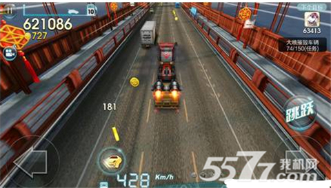 1、在游戏刚开始时,赛车的速度较低,我们可以使用加速道具,将赛车的速度提升到最大值,这样有利于超车。