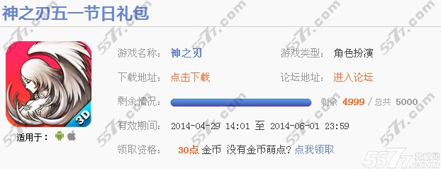 神之刃五一劳动节礼包内容: