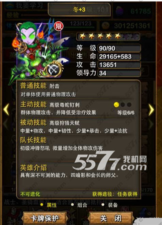 队长技能:初级冲锋怒吼,可以增加全体的物理伤害攻击