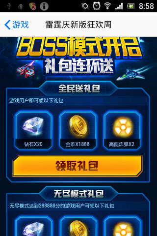 今天小编要为大家带来的是雷霆战机新版欢庆礼包的领取方法介绍,可能不少玩家都不知道怎么领,或者说有这么个礼包,小编就简单的说下方法!