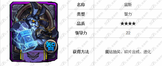 宙斯是一个4星级的智力型英雄,领导力和守护精灵一样也是22点,所以不太适合来当队长,获取方法也不是那么的容易,需要用碎片来进行合成,是一个不错的辅助型智力英雄。