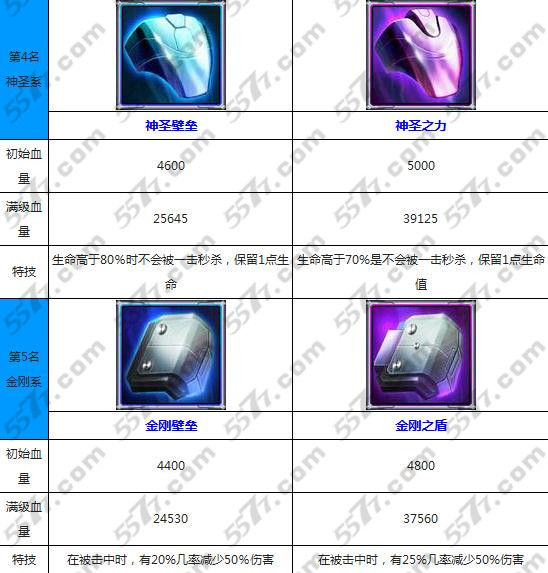 神佑:装备多层装甲,生命高于70%是不会被一击秒杀,保留1点生命值(技能LV4时效果)