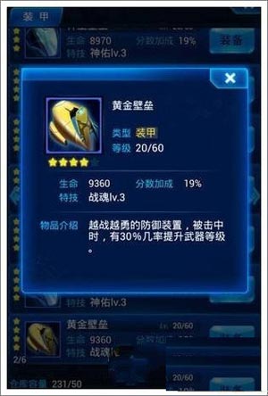 黄金壁垒是一款金闪闪的装甲,越打越武器等级提升越高,不过一路上能靠自己升级武器等级的玩家来说,就显得有点多余,不过如果在那种早期就会遇到强力敌人还没能赶上升级武器的情况下,这技能就能发挥作用了!