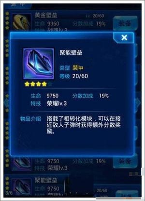 这技能一看就知道强力,特别在后期和皮糙肉厚的BOSS对耗时效果尤为显著,虽然没表示每秒能恢复多少,不过绝对好用,只是获得难度有点高,是作为玩家战机装甲的最强者。