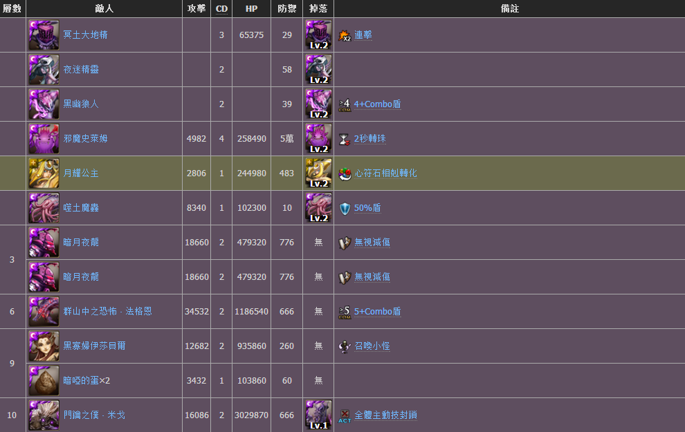 备注:敌人在CD0发动攻击时将连续进行两次攻击。倘若单次攻击大于当前血量50%,则使不倒意志类的队长技能无法发动
