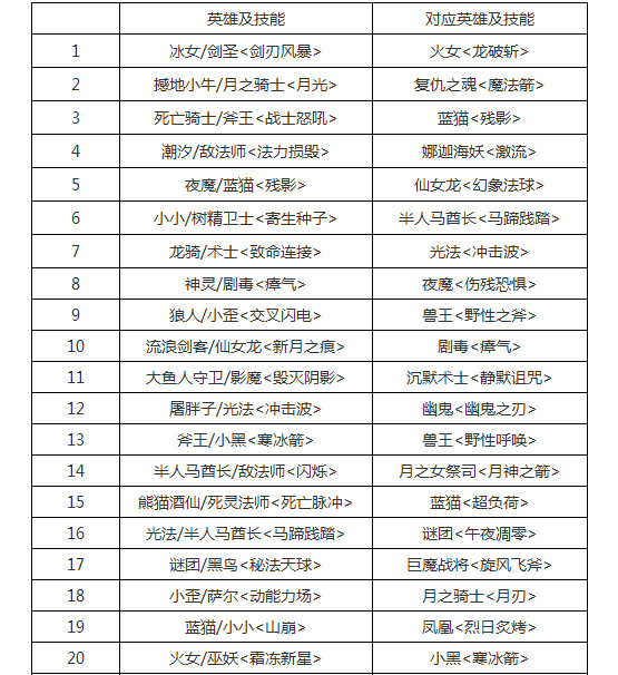 在全民英雄这款游戏里面很多英雄之间都是有技能连锁的,但是由于数据量稍微有那么一点庞大很多玩家都快不知道那个英雄可以跟那个英雄开启技能连锁了,小编在这里为大家整理了一下技能连锁表的数据来帮助大家更好的进行游戏。