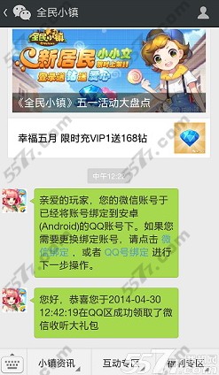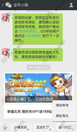 全民小镇游戏官方为了感谢微信用户对游戏的支持,目前开启了“微信收听有福利”活动,各种免费钻石和金币获取,不过需要绑定猜能够领取礼包,下面一起来看看具体操作步骤吧!