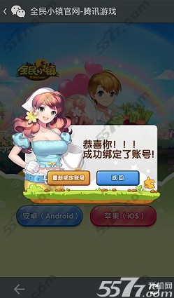6、成功选择大区并进行账号绑定后,请点击“返回”按钮,如需进行其他游戏账号绑定,请点击“重新绑定账号”按钮