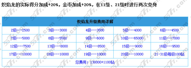 新版本炽焰龙新版本得到了加强,满级攻击力可以达到900多点,炽焰龙满级为60级,可以升级进化为4星级月亮级宠物,玩家需要在副本中刷取经验卡来升级宠物,才能提升战斗力。