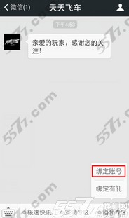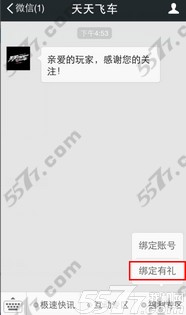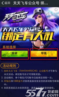 天天飞车收听微信公众账号有礼活动: