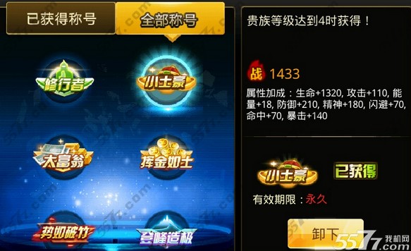 目前开通天天炫斗【贵族】达到一定级,可获得对应的称号:【小土豪】、【大富翁】。