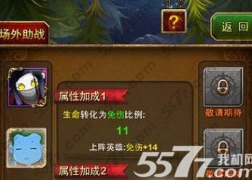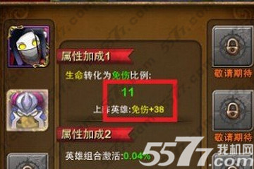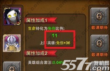 5、针对第4条,说明下,若果你受到的攻击为30000,如果你已经刷到了免伤比例为2%,如果你有50000血量的英雄助战,那 么即相当于你有了3.33%的法抗或者物抗,具体获得数据与你助战英雄血量和所受攻击有关,注意:是法抗或者物抗,同时拥有法抗和物抗哦!