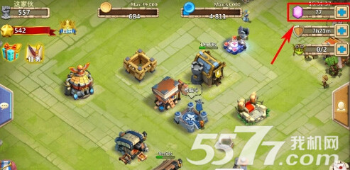 1、玩家进入城堡争霸游戏,在游戏的首页就会发现一个粉红色的宝石标记,这里显示的就是玩家的宝石数量。