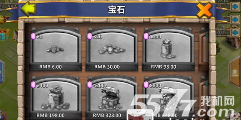 2、点击宝石就会出现让玩家选择钻石的界面,玩家可以按照自己的需要来充值购买宝石,最低消费为6元,可以获得60宝石。