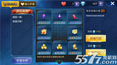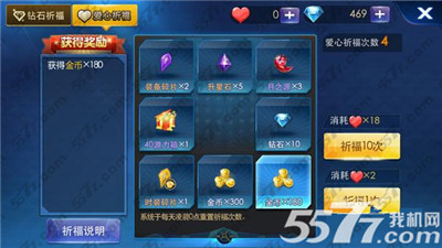 首先每一次祈福需要耗费的钻石数量10。抽取采用两种方式1.手动点击抽取一次。2.贵族专享的祈福10次连抽可以节省10砖石。