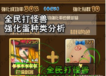 全民打怪兽游戏中强化蛋的种类共有5中,每种蛋增加的成功率各不相同。