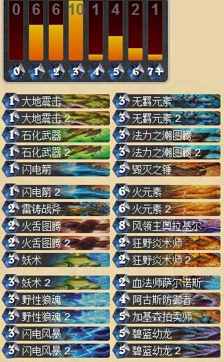 如果你看过卡组列表,你会注意到与你标准的中速/控制套牌相比较,会感到有些奇怪。中速萨满中包含大部分3费卡牌和1张4费卡牌。原因是因为萨满强力的卡牌都聚集在3费卡牌中:无羁元素,法力之潮图腾,闪电风暴,野性狼魂和妖术。