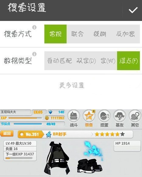 建议搜索数值大的装备,因为数值越大最后得到的数据越少。