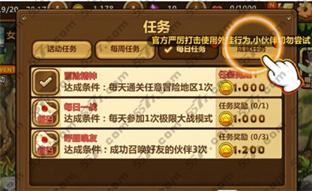 全民打怪兽中,玩家登录游戏可以进行每日签到,同时还可以刺激好玩的日常挑战副本活动来赚取强化和升级宠物所需要的金币和钻石,反正全民打怪兽中日常奖励还是蛮丰富的。