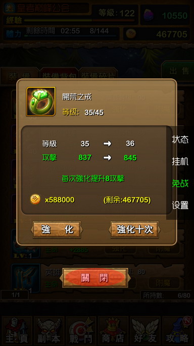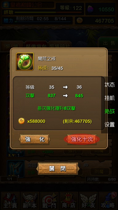 这样就可以立刻完成10次的强化了, 跳过无聊的动画效果