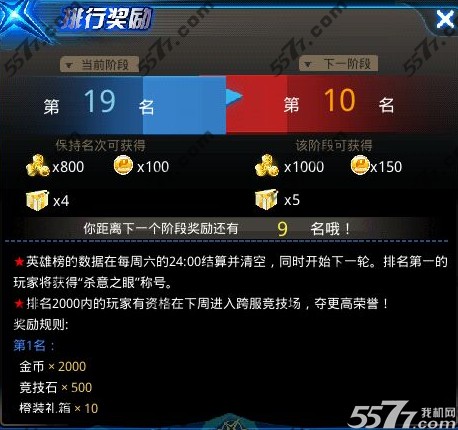 1、玩家只需要进入竞技场,那么到达排名前2000就有奖励!