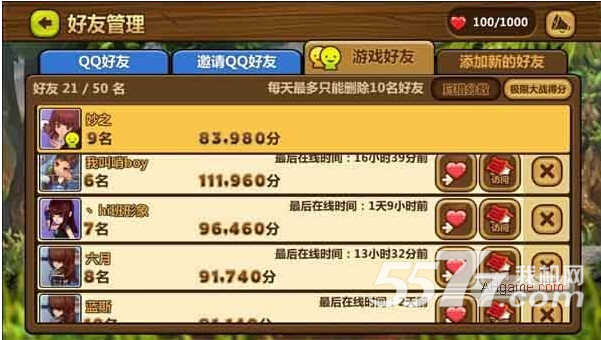 全民打怪兽中的好友系统玩法还是蛮丰富的,玩家添加好友后可以给好友送爱心和体力,还可以点击访问系统来摆放好友,如果好友长时间不上线,你就可以点击后面的删除选项将好友删除,然后添加新的“活人玩家”来给自己送爱心。