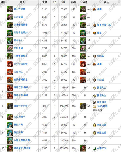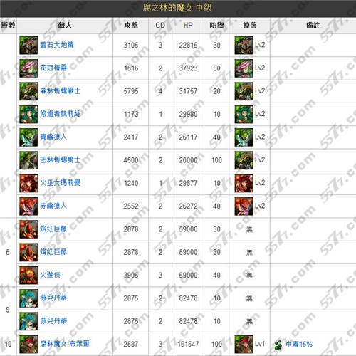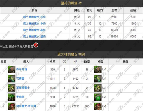 本周佣兵的战场是木属性副本,这个副本在佣兵系列中难度较高,而且没有火属性符石,中级以上的难度会有10 个关卡,高级之后的小怪会带状态,高级以上的烙红巨像‧ 解放的特性,必须同时打死才能过关,高级和超级的第九关会出现2 只薇儿丹蒂,每回合都会自动补满血,必须靠着过人的伤害才能一次解决,超级难度会出现无常之斯库尔德,当她的生命减少攻击力就会越来越高,生命力低于30% 还会增加连击效果,如果队伍中有一只暗影剑豪会很好处理,最后的BOSS 腐林魔女‧ 布莱尔会施放中毒的技能,难度越高造成的伤害也会越多。