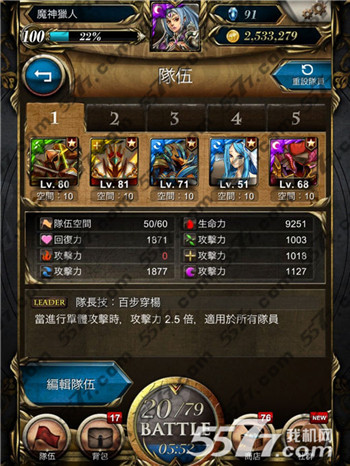 好了~通关~~~~=。=我是0石通关的,别误会,我没用过石头的。第一张队伍图片是我通关完的时候截的。所以石头数量一样。同时,我的简体号,用了木游+光妹+水妹+暗妹+暗游+了个满等 木游 通过超级了。(我习惯繁体号没体力就去玩简体号的^_^)由此再一次证明,其实超级很并不困难,希望对各位能有帮助。(完)
