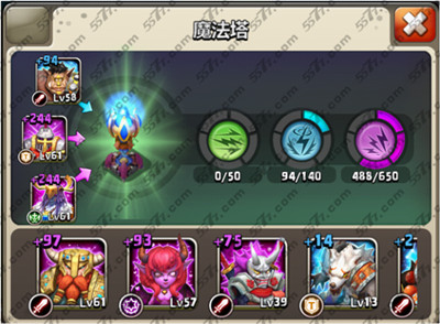 备注:每个防御塔,可放置3个英雄,根据英雄产生的数值效果,来提升对应技能的等级。(驻守后可以取出,已驻守的英雄不能同时出战,驻守的英雄在攻城战中也会分配经验)