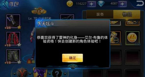 3、点击道具后,玩家就获得的了雷神的化身,艾尔布鲁角色体验资格。是不是很开心呀、