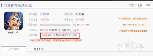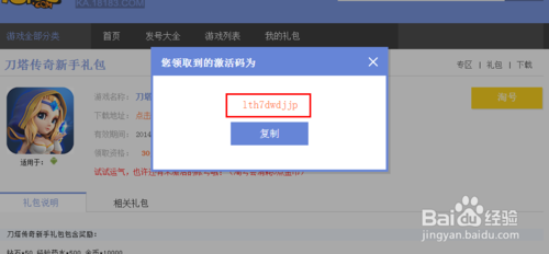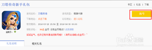 你可以淘到一个激活码,在游戏中兑换ps:兑换过的激活码也会在这出现,所以当输入不是时,抱歉,那个被兑换了,只能要金币来买着礼包。